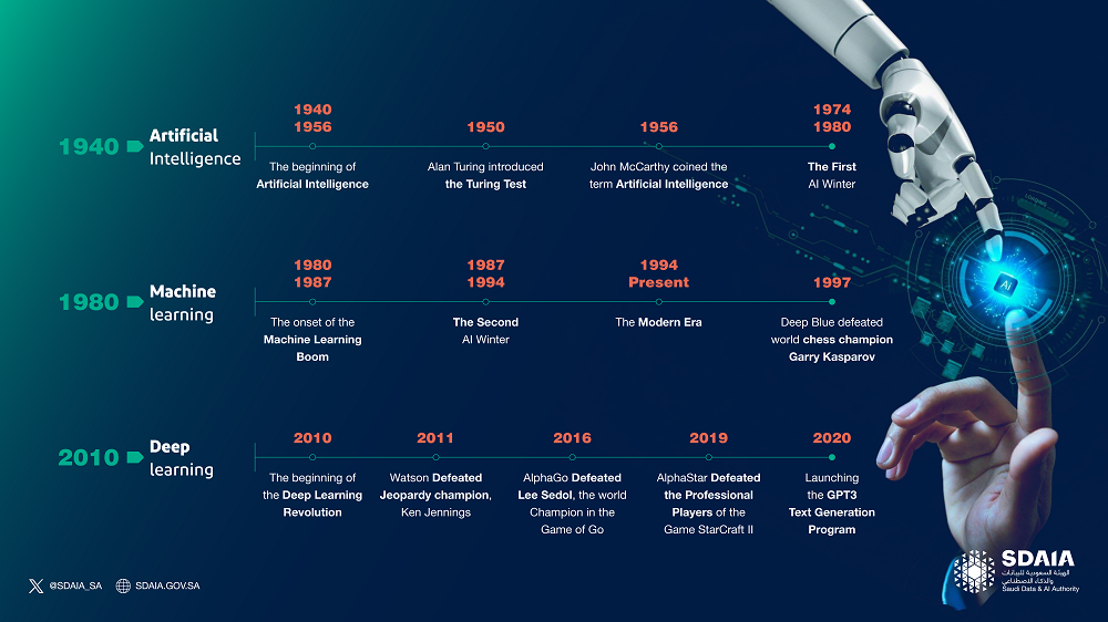 Kecerdasan buatan atau Artificial Intelligence (AI) terus mengalami perkembangan sejak mulai diperkenalkan tahun 1940. AI memainkan peran penting dalam pengembangan kota dan manajemen acara di Arab Saudi, terutama dalam persiapan untuk menjadi tuan rumah acara global seperti Piala Dunia FIFA 2034. Teknologi AI telah menjadi inti dari megaproyek Kerajaan, termasuk NEOM dan Qiddiya, yang menempatkan Arab Saudi sebagai pemimpin global dalam inovasi dan pengembangan kota pintar.