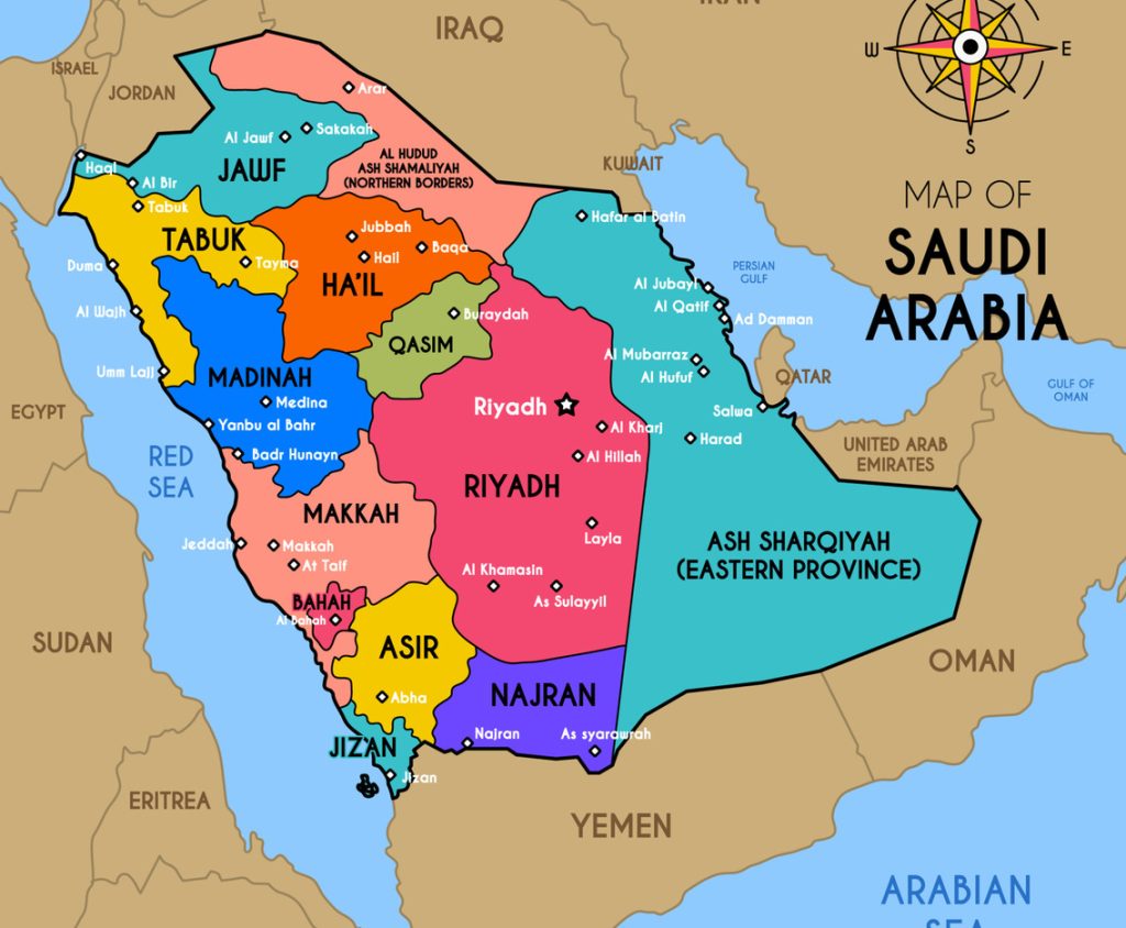 - Di selatan: Provinsi Najran dan Aseer